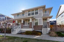 Showcasing rare versatility and elevated design, this beautifully crafted 4-bedroom, 4-bath Lennar "Next Gen" home in Central Park's Wicker Park neighborhood offers an exceptional blend of flexible living, upscale finishes, and standout outdoor space. With a private attached suite, 3-car garage, and a backyard retreat featuring an expansive deck and Caldera saltwater hot tub, this home is designed to meet a variety of lifestyle needs. A large covered front porch welcomes you into a light-filled interior. A defining feature is the private Next Gen suite, complete with its own entrance, living area, kitchenette, bedroom, bath, and laundry — ideal for multi-generational living, guests, or income potential. Inside the main home, designer lighting, new carpet throughout, and a soft neutral palette complement the open-concept layout, where the chef's kitchen connects seamlessly to the dining area and living room, anchored by a floor-to-ceiling stacked stone fireplace with floating wood mantle. A main-level office with French doors, mudroom, and powder bath add everyday functionality. Upstairs, the primary suite features a tray ceiling, built-in coffee bar, walk-in closet, and a spa-like 5-piece bath with soaking tub and dual quartz vanities. Two additional bedrooms with walk-in closets, a full bath, and laundry room with utility sink complete the upper level. The unfinished 1,700 sq ft basement offers incredible potential. Solar panels and dual HVAC systems offer energy efficiency, year-round comfort, and peace of mind. A new roof and fresh exterior paint give this home exceptional curb appeal and added peace of mind for years to come. Located steps from the park with quick access to Anschutz Medical Campus, DIA, and Downtown Denver.