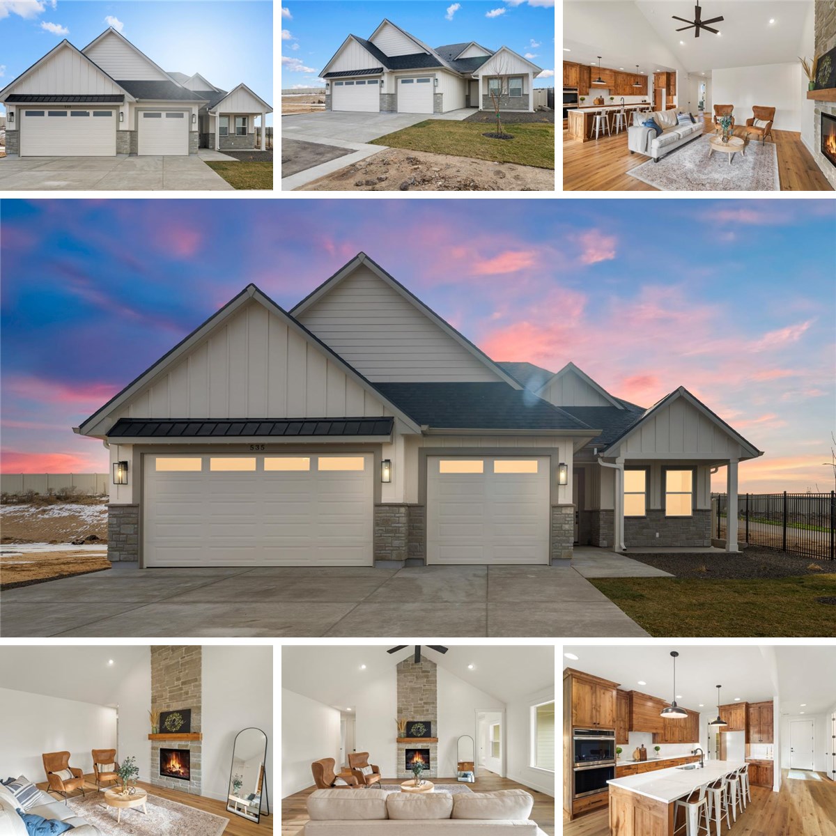 The stunning single-level "Hawthorn" floor plan by KJ Custom Builders, located in The Ridges within the new Mayfield Springs planned community. This home sits on a .21-acre corner lot with beautiful mountain views and borders a peaceful community walking path. Offering 2,164 sq ft, the layout includes 3 bedrooms, 2.5 baths, a true dedicated office, and a spacious 3-car garage. Interior features include 9' ceilings throughout, 8' doors, and a vaulted great room centered around a stylish fireplace insert. The open-concept living, kitchen, and dining areas create an ideal setting for gatherings and everyday living. The upgraded 400-amp electrical service offers enhanced capacity for reliable whole-home power, specialty equipment, and modern energy needs. A well-designed blend of function, comfort, and quality in one of the Treasure Valley’s most exciting new communities. Builder offering a $10,000 concession for signed contract, don't wait this is a great incentive!
